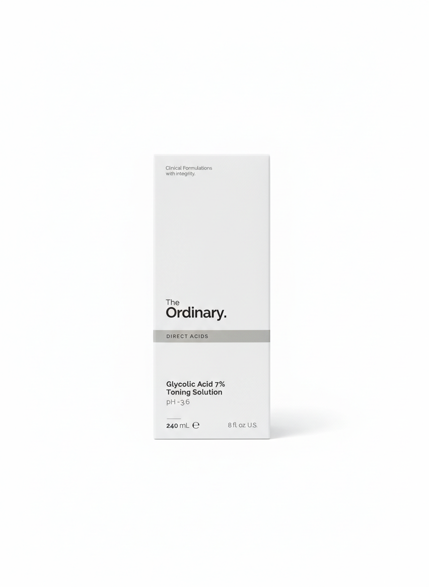 The Ordinary Glycolic Acid 7% Toning Solution is a gentle exfoliating toner designed to improve skin texture, clarity, and radiance. Formulated with 7% glycolic acid, amino acids, aloe vera, ginseng, and Tasmanian pepperberry, it helps remove dead skin cells, unclog pores, and promote a brighter, more even complexion. Ideal for nighttime use, this toner supports skin renewal without being overly harsh. Suitable for most skin types, except sensitive or compromised skin.