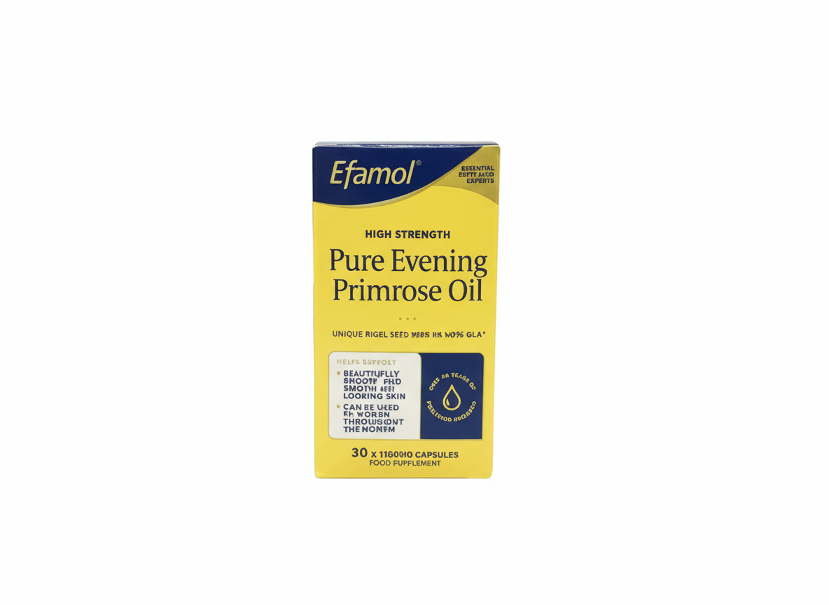 Efamol Evening Primrose Oil 1000mg provides high-quality gamma-linolenic acid (GLA) to help support hormonal balance, skin health, and general wellbeing. It’s especially beneficial for women’s hormonal cycles and maintaining smooth, healthy skin.