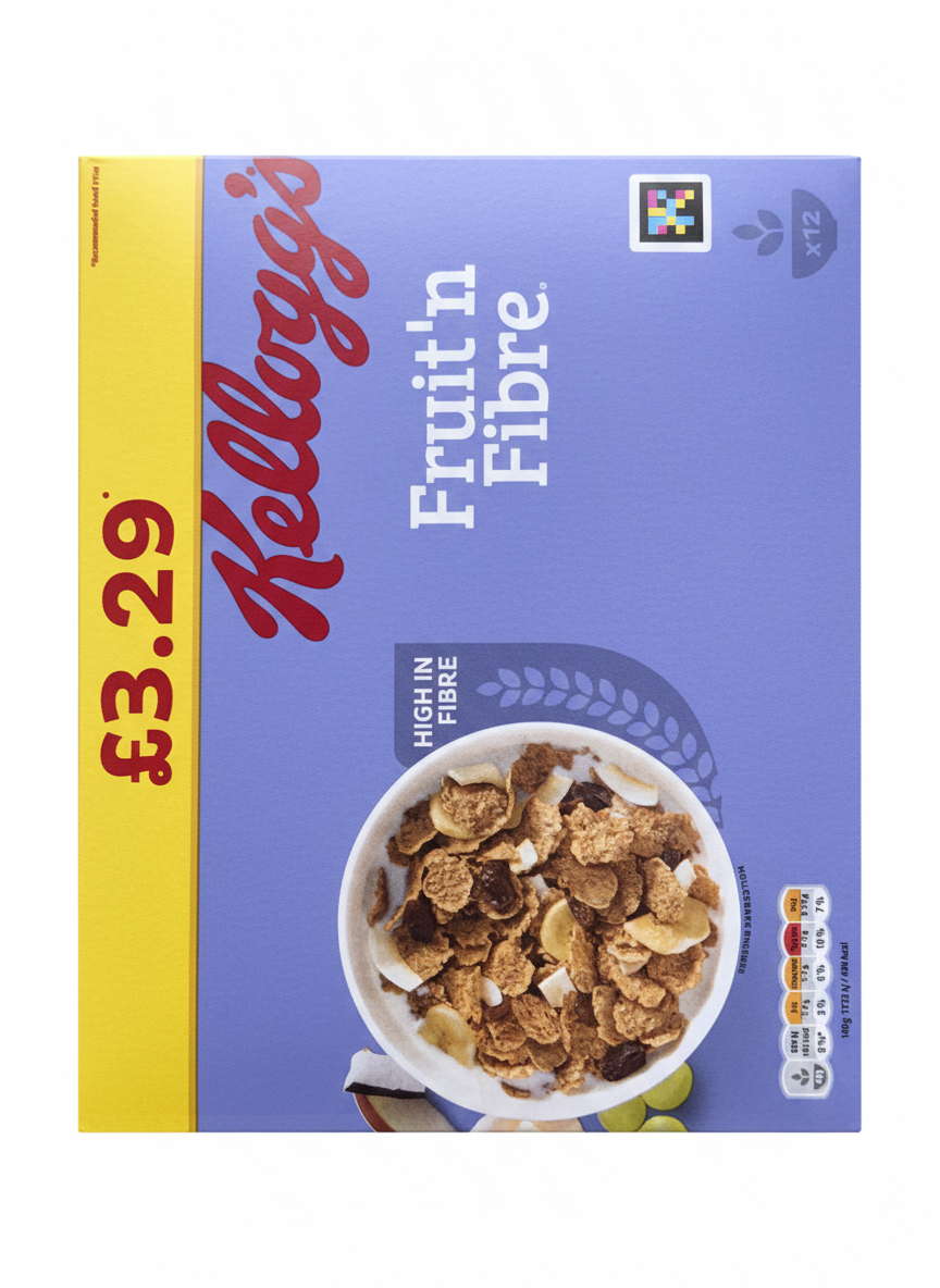 Kellogg?s Fruit ?n Fibre combines the goodness of crunchy whole wheat flakes with a delicious mix of raisins, banana, coconut, apple and hazelnuts. Each bowl delivers a source of fibre to support healthy digestion while providing a tasty and satisfying start to your day. Perfect for anyone who loves a balanced, nourishing breakfast.